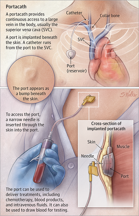 The port healed a bit. They still want to do a study. It’s no longer making me feel like I’m having a 3-day heart attack but it looks like it popped out a little bit.