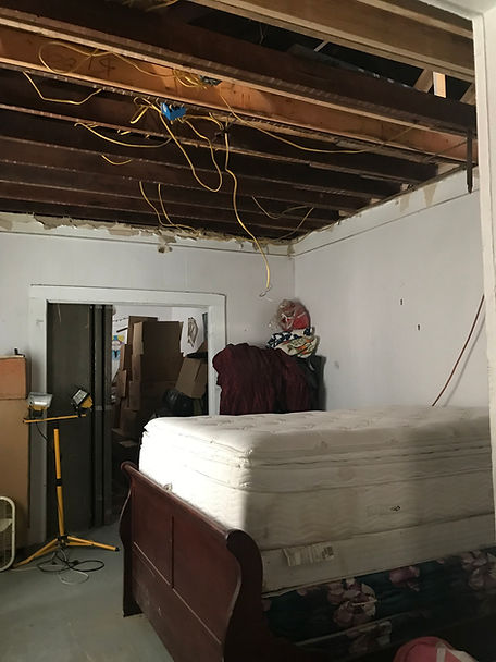 (The rental unit–no ceilings, boxes in the front room 8 feet high, and a stack of mattresses getting filthy, one of which is the awesome mattress that I should be sleeping on, in my home. It’s so wet in there that the boxes are beginning to collapse. So this is a mess.)